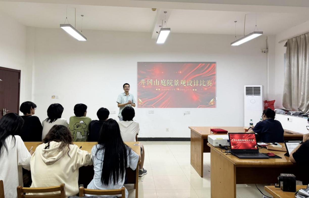 本网讯 为深化产教融合,践行“以赛促教、以赛促学”理念,我院环境设计专业携手江西冶园园林设计咨询有限公司,于6月16日在红旗校区建设楼212举办了“井冈山庭院景观”设计大赛现场评审会。此次大赛旨在通过校企合作,使学生能够在实际项目中锻炼和提升设计技能。