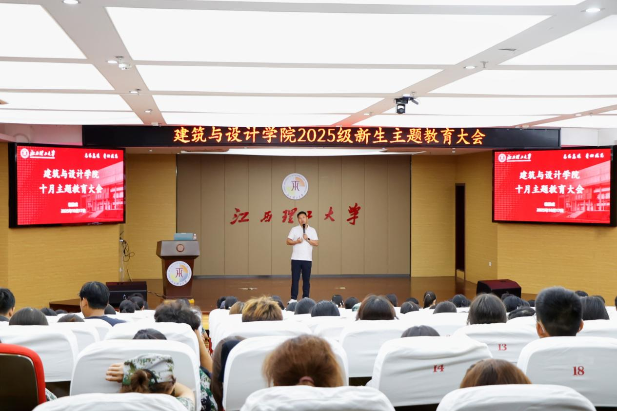 本网讯 为帮助新生尽快适应大学生活,增强思想觉悟、安全意识与健康防护能力,我院于10月17日在红旗校区大礼堂召开新生主题教育大会,本次主题教育由学院团委书记兼学工办主任宿雅威负责讲授,全体新生参会。