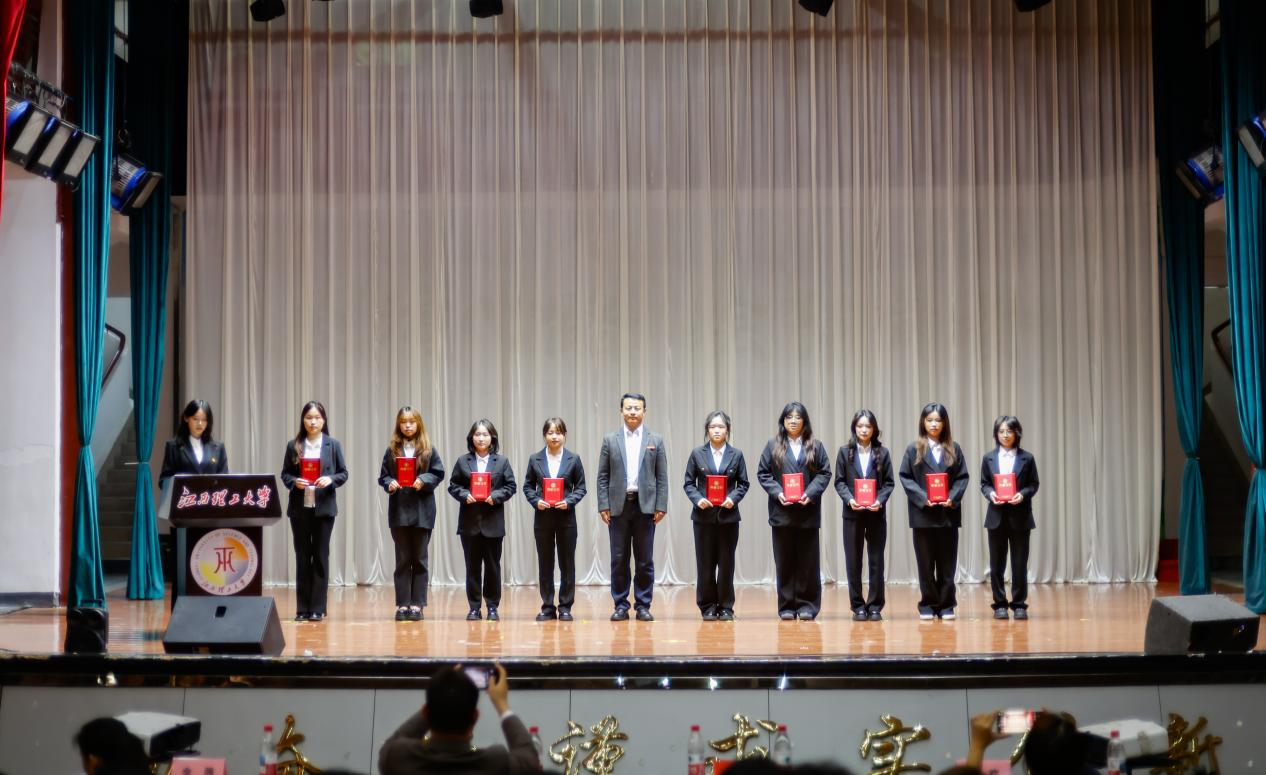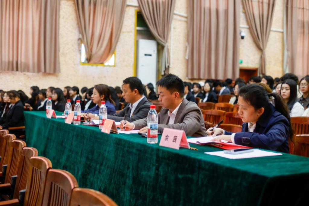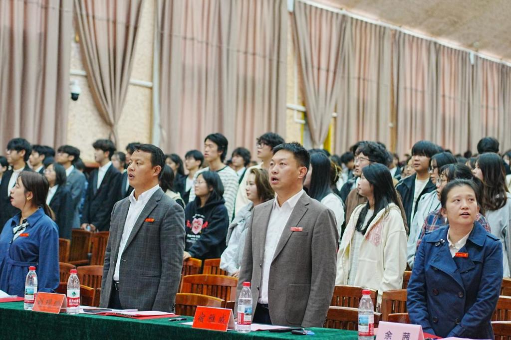 本网讯 为保障学生工作的连续性与创新性,选拔并培养新一代学生骨干力量,10月26日,我院在红旗校区大礼堂成功举办第六届学生组织换届大会。学院党委副书记刘现鹏、团委书记兼学工办主任宿雅威、党建组织员梁欢、研工办副主任余茜、全体学生干部及2025级全体同学参与,会议由院团委学生副书记王舒窈主持。