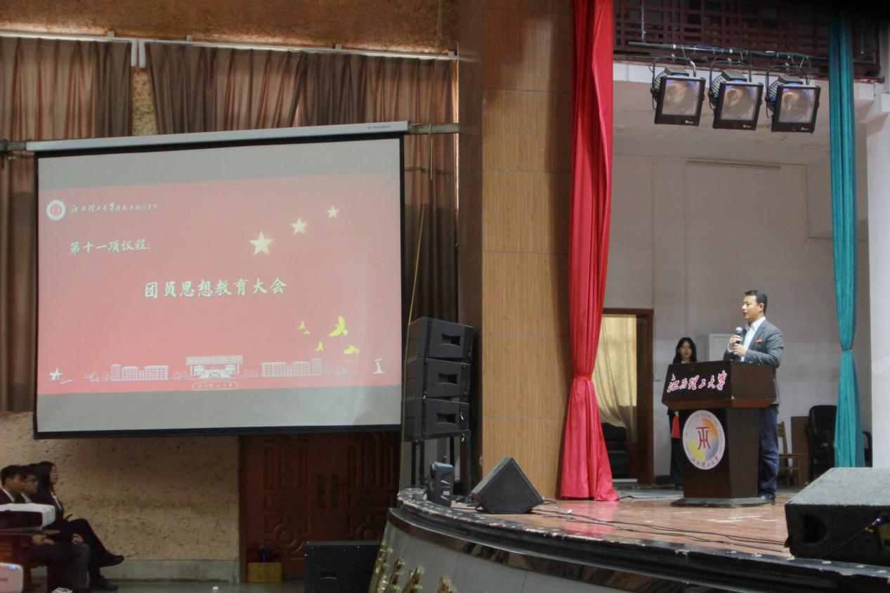 学生组织换届大会结束后,团员教育大会随即召开。刘现鹏围绕履行团员义务、培育理想信念、加强学风建设等方面作了讲话,鼓励全体团员以实际行动发挥模范作用,为学院发展与个人成长筑牢思想根基。