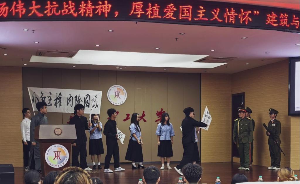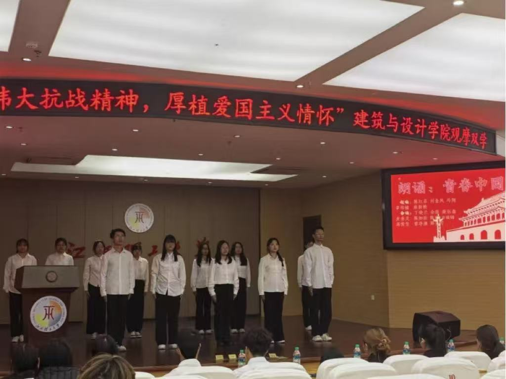 本网讯 为积极弘扬伟大抗战精神,厚植爱国主义情怀,11月22日,我院在红旗图书馆大礼堂举办观摩双学活动。活动由建筑与设计学院城规251和252班团支部组织,学院红旗校区全体同学参与观摩。本次活动通过视频观看、话剧表演、诗歌朗诵等多种形式来传承红色基因、厚植家国情怀。