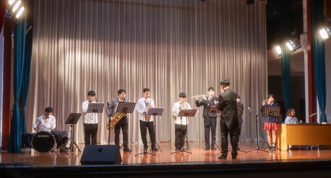 数理学院的胡锦鹤等带来了器乐合奏《春之光夏之风》,曲目融合春日的明媚与夏日的热烈,以跳跃的音符描绘季节交替的生机与活力;来自大学生艺术团管乐队的同学们深情演绎《夏日最后一朵玫瑰》,管乐合奏温婉而略带感伤,仿佛夏日将尽时对美好的深情回望;材料科学与工程学院的王邦有以一曲葫芦丝《花筒裙》,旋律明快、韵律灵动,仿佛花筒裙摆随风摇曳,尽显浓郁的民族风情;信息工程学院叶尔夏提·海拉提独奏冬不拉《哈萨克战魂》,气势恢宏,再现哈萨克民族的勇毅与荣光。