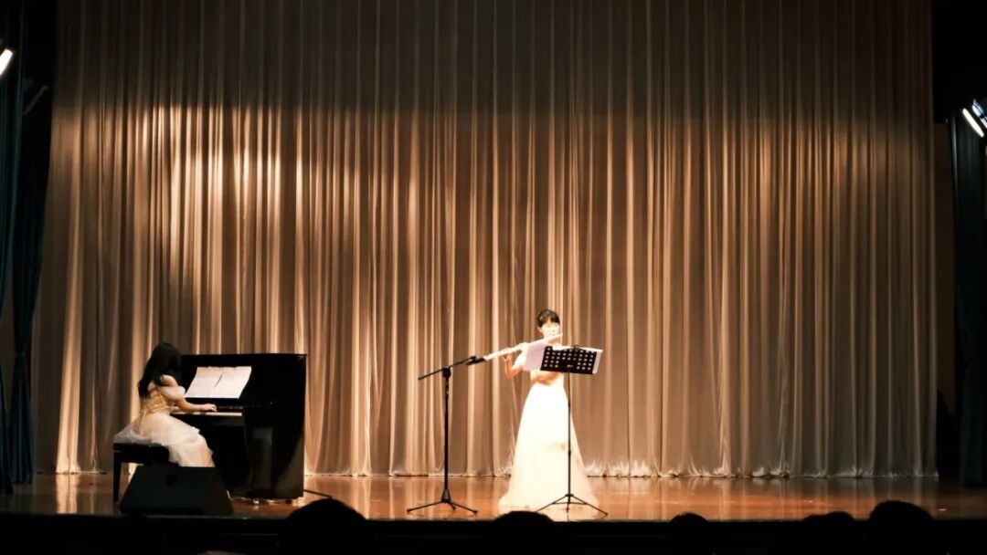 外国语学院的李怡嘉以钢琴奏响《彩云追月》将传统民乐与西洋器乐巧妙融合,旋律飘逸婉转,如梦似幻;来自信息工程学院的陈小蓥、钟艺以钢琴、长笛联袂演绎《Golden Hour》,光影般流动的音符捕捉日落前后的“黄金时刻”,温暖而璀璨;法学院肖晨的钢琴独奏《练习曲“博士”》取材于德彪西经典,技巧性与音乐性并存,展现严谨结构下的灵动想象;冶金工程学院的王子维用竹笛再现《西游记》经典插曲《女儿情》,旋律柔美婉转,道尽女儿家的细腻情思;来自数理学院的肖翔元用吉他弹奏原创《无题》,不设主题,任由情感流淌,简约中见深沉。