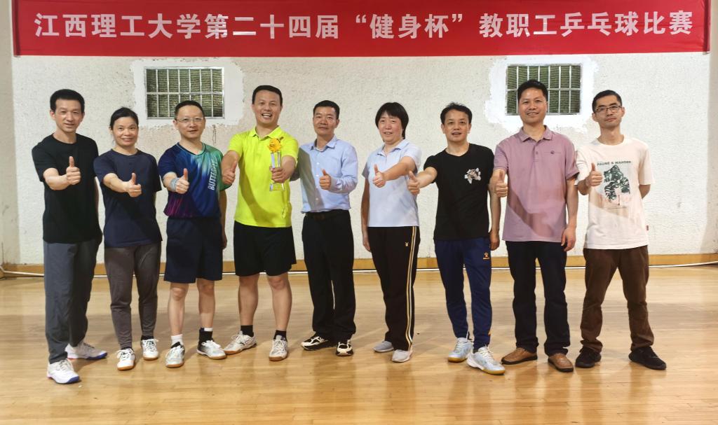 本网讯 4月10日,江西理工大学教职工乒乓球团体赛圆满落幕。我院代表队凭借扎实技术和稳定发挥,历经多轮角逐,最终斩获本次赛事团体冠军,这也是我院继2022年之后,第二次夺得该项赛事冠军。