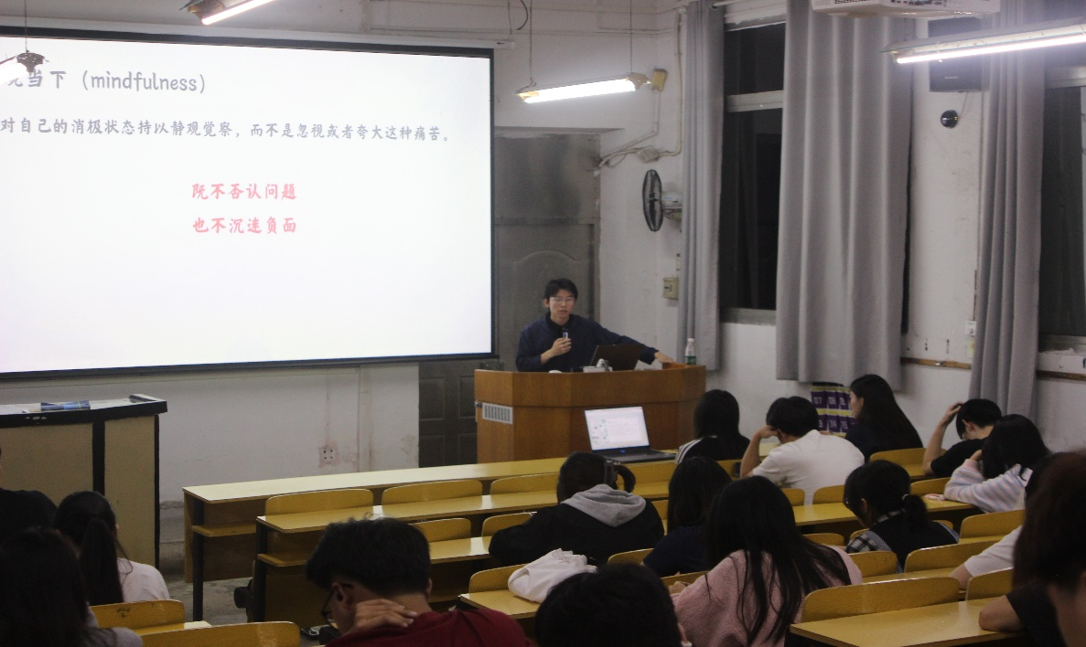 本网讯 为进一步健全心理健康工作,规划设计学院于4月8日晚在红旗校区二教101召开了学生心理健康工作专题会议,学院全体班级心理委员、宿舍心理联络员参加了会议。会议由郭文瞻主持,邀请学校心理中心黄传昊老师主讲。